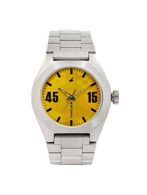 fastrack analog yellow dial men's watch - 3110sm04