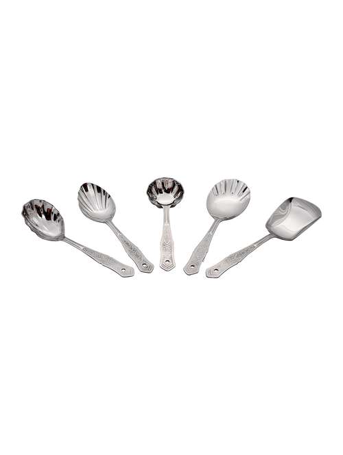 hazel stainless steel serving spoon umbrella,silver, set of 5 - 15540777 - Very Small Image - 1