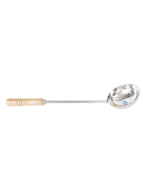 - » steel jumbo tadka pan long wooden handle 55.5 cm, 400 ml, silver