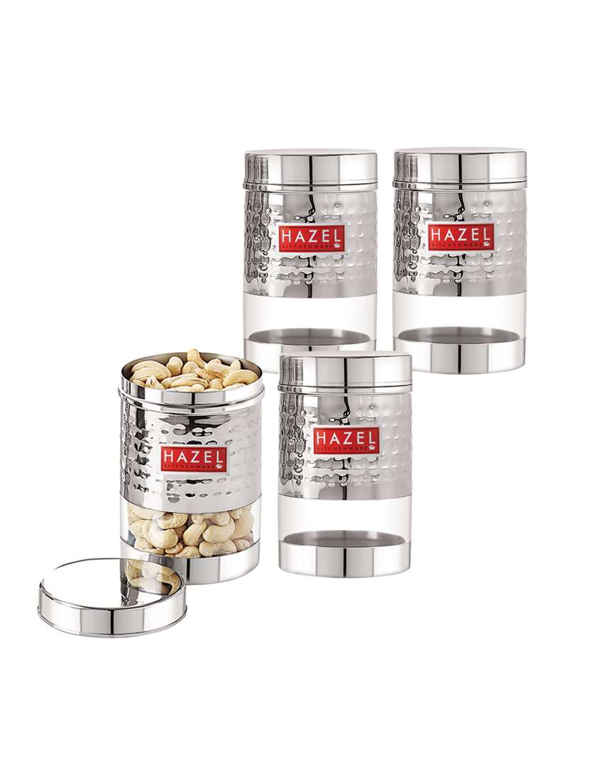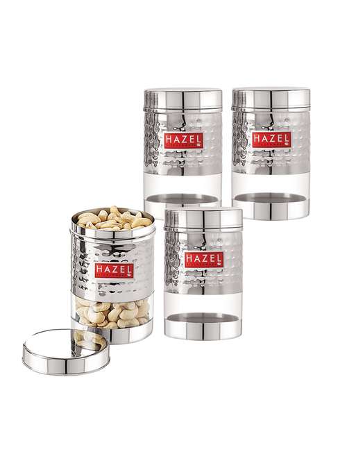 - » hazel stainless steel hammered finish transparent glossy see through container, set of 4, 600 ml each, silver