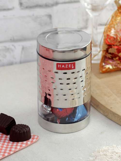 - » hazel stainless steel hammered finish transparent glossy see through container, 700 ml, silver