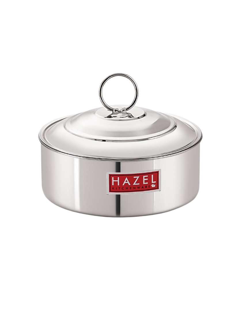 - » hazel stainless steel serving casserole flat bottom roti chapati dabba, 18.8 cm, 1550 ml, silver
