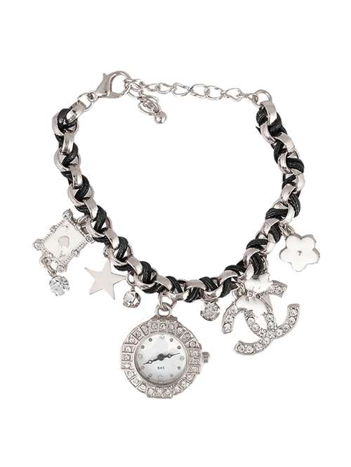 - » silver black color, analog bracelet watch with rhinestone embellishment