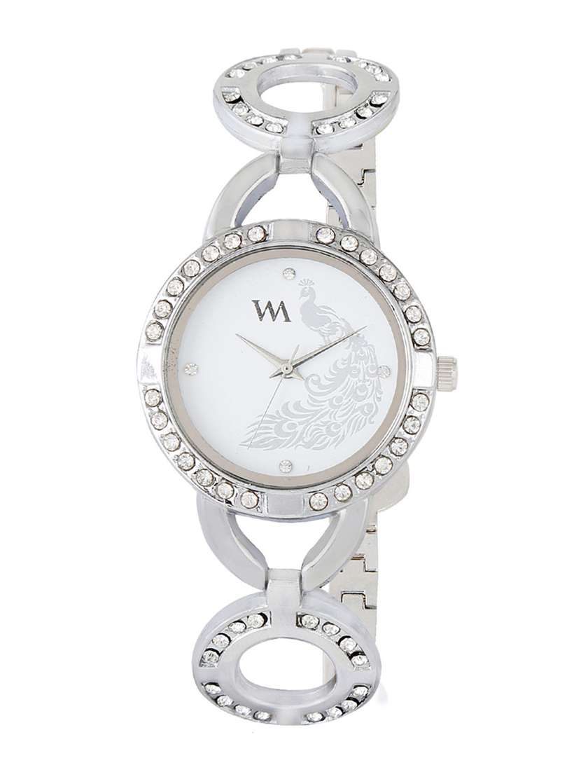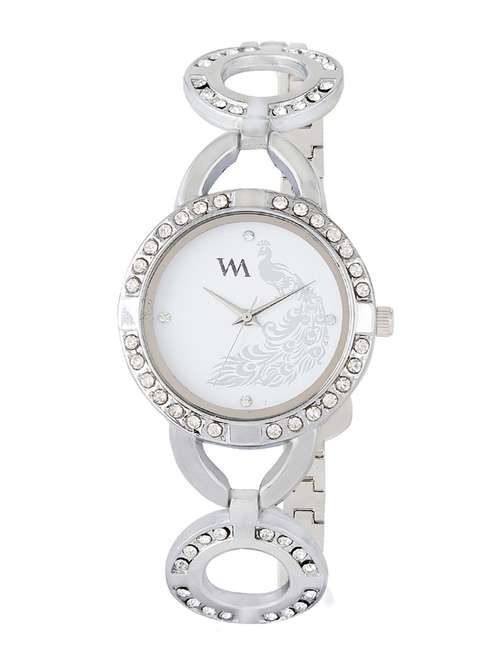 wm white dial silver metal watch for women and girls wmal-107-s