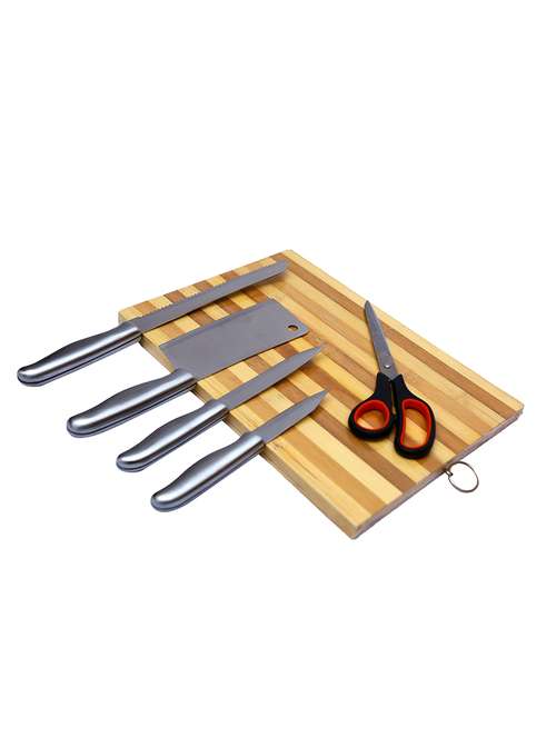 home creations choppingset-steel silver, brown kitchen tool set (6 pcs knife set with chopping board)
