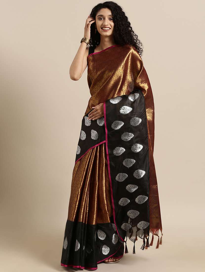 A graceful combination of Kora muslin Silk weaves with gold & Silver Zari weaves Kanjeevaram Special style all part in body with contrast blouse,Pallu give saree look very royal and elegant border