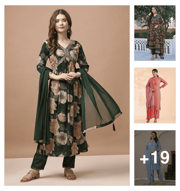 women printed kurta pant set with dupatta