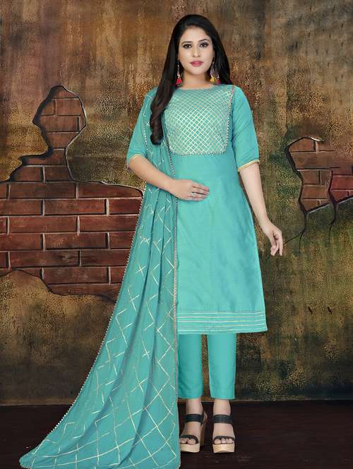 - » sky blue gota work unstitched suit