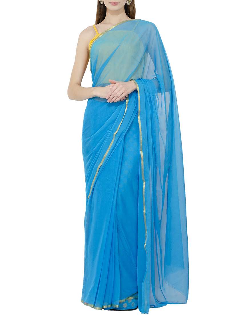 - » sky blue chiffon plain saree with blouse