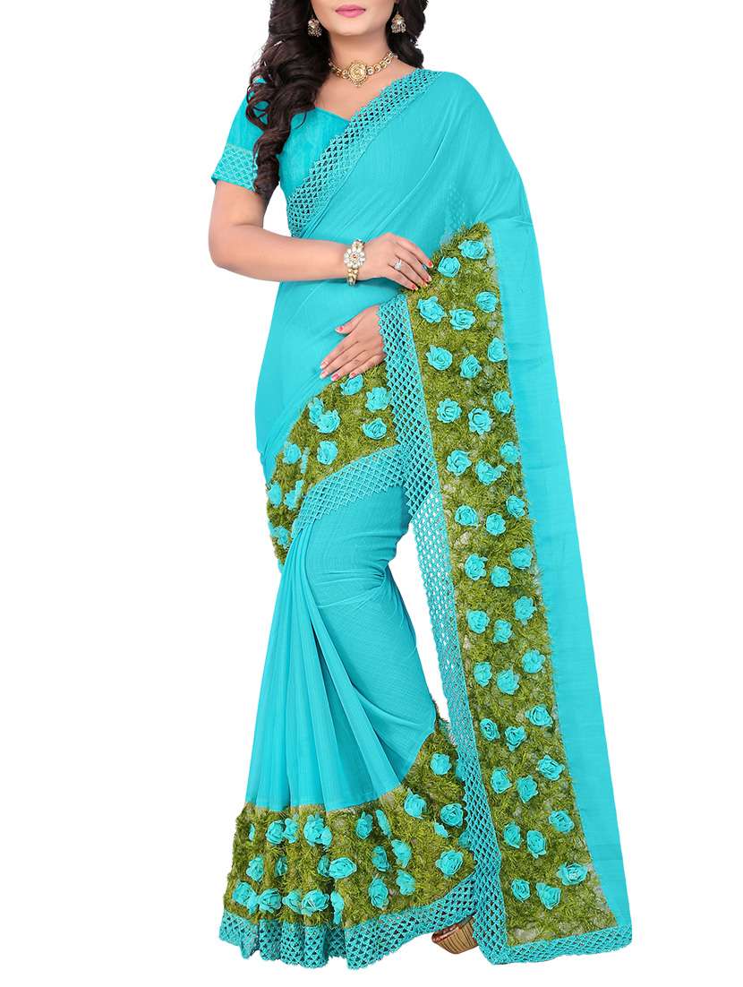 Be style of designer fancy festive best in this chiffon saree with net skirt and lycra attractive pallu Intricate grass and ribbon flower designer printed pure chiffon