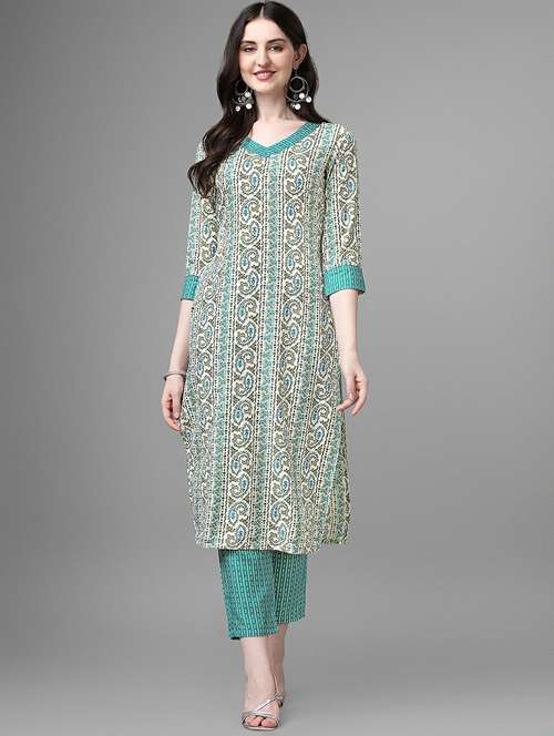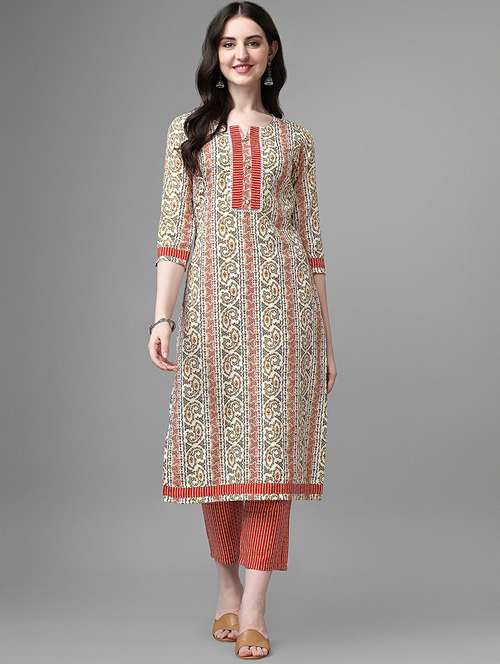 - Grab this beautiful kurta made up of cotton blend fabric featuring v neck neck designs.