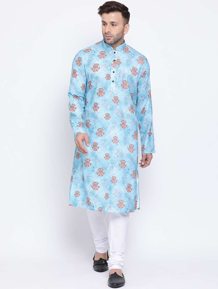 men floral kurta churidar ethnic wear set