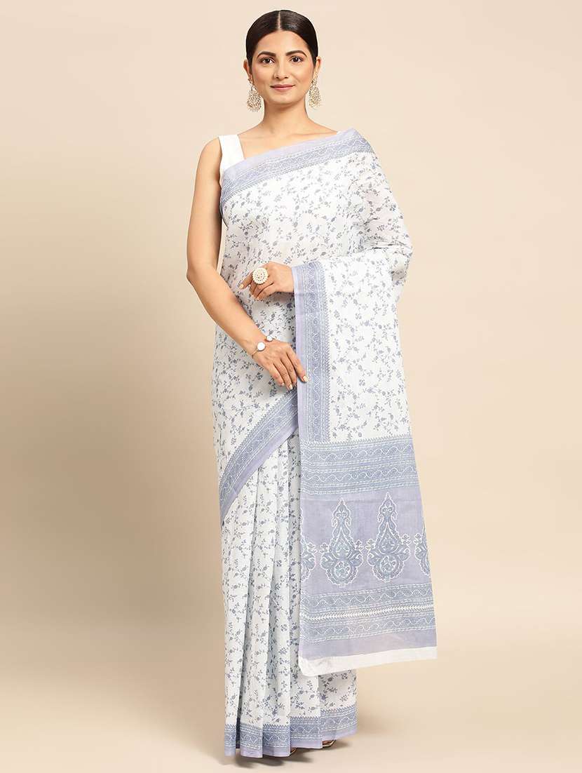 - » women's floral white colored saree