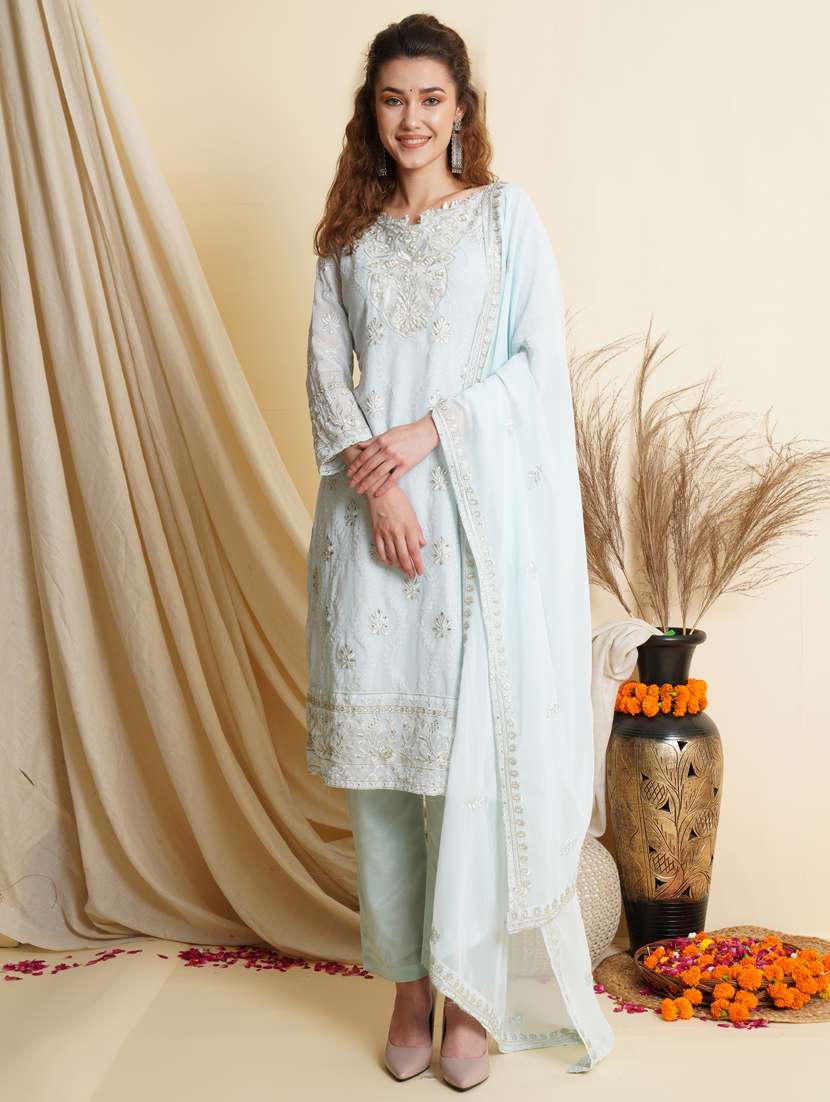 - » embroidered unstitched straight pant suit set
