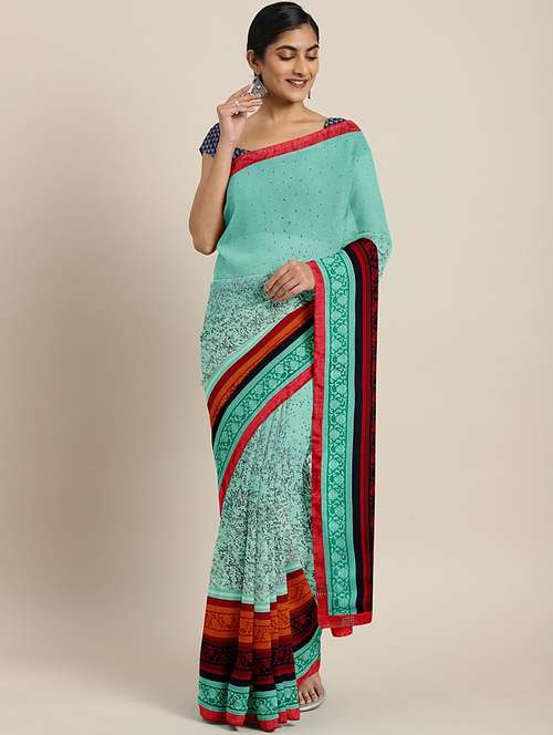 turquoise printed saree with blouse
