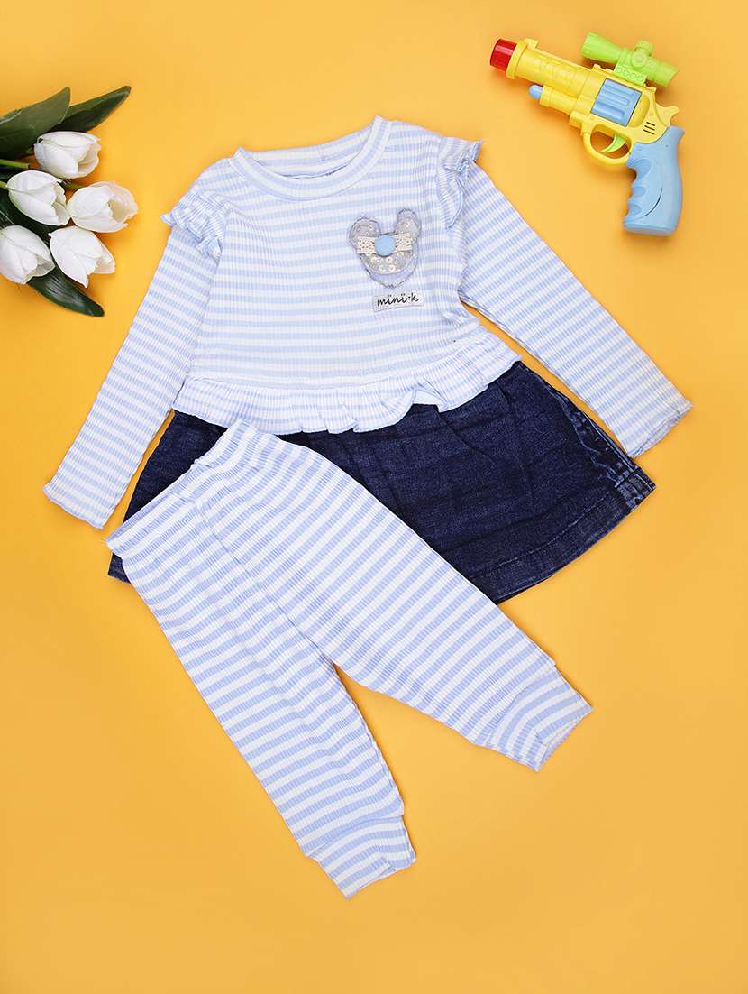 - Browse through the huge collection of casual wear twin sets and jump suits for girls in blue colors and designs to make your young lady look the fashionista that she is.