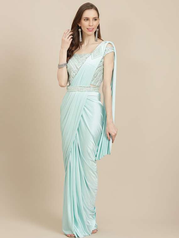 - » women's solid light blue colored saree with blouse