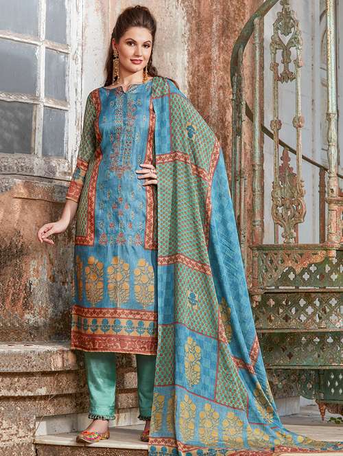 embroidered semi-stitched suit