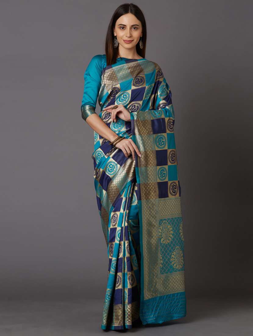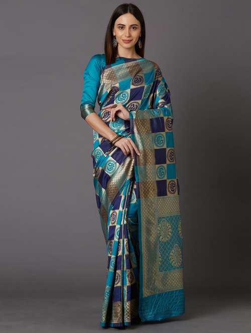 - » women's checks turquoise colored saree with blouse