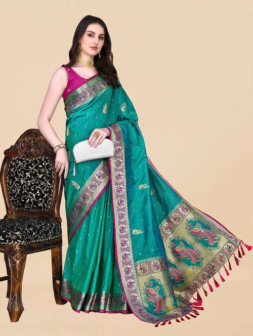 contrast bordered woven saree with blouse - 19480816 - Very Small Image - 1