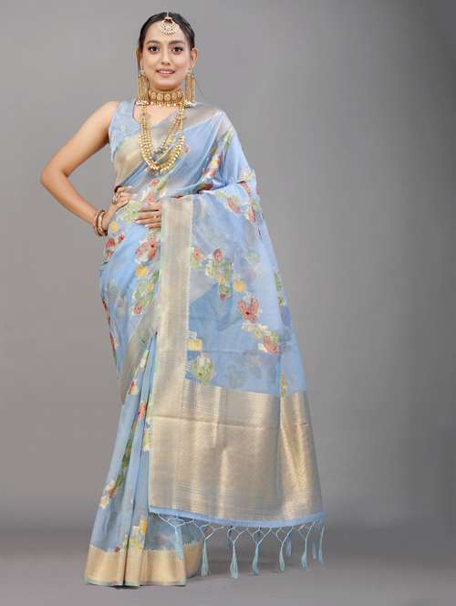 - » women's self design light blue colored saree with blouse