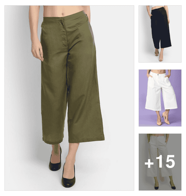 globus women clay satin stretchable mid-rise relaxed fit flat front cropped wide leg formal trousers