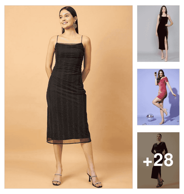 globus women black buckle detail square neck strappy shoulder korean midi sheath party dress
