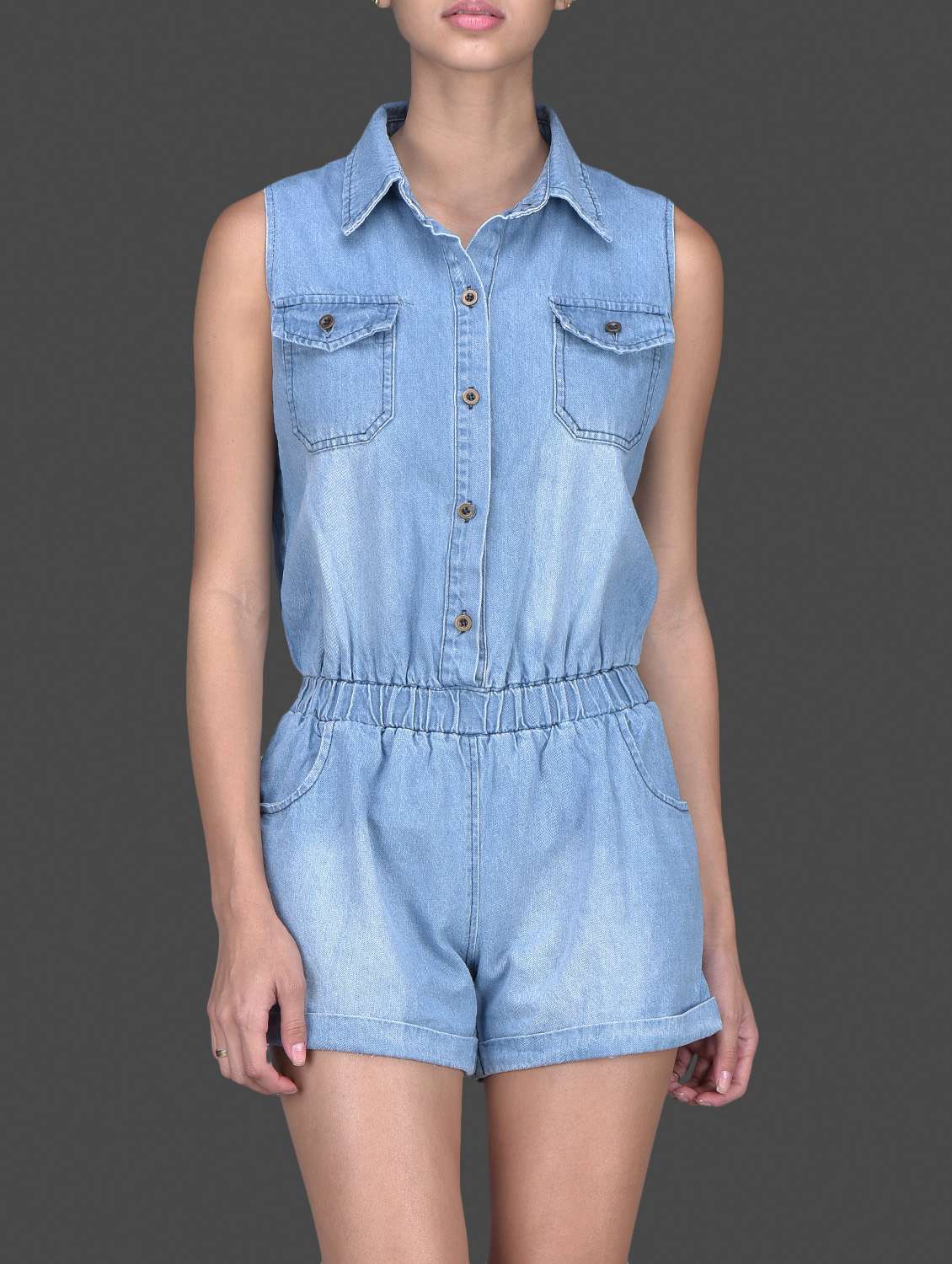 - » sleeveless washed denim rompers