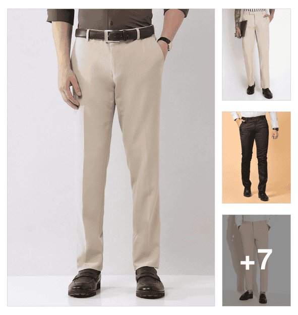 men solid mid rise straight formal trouser