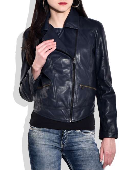- » solid navy blue full sleeved jacket