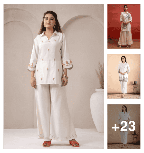 women three quarter sleeve kurta pant set