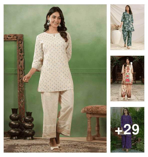 women three quarter sleeve ethnic co-ord set