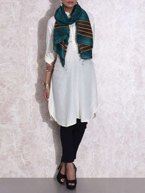 - » teal green raw silk handloom stole