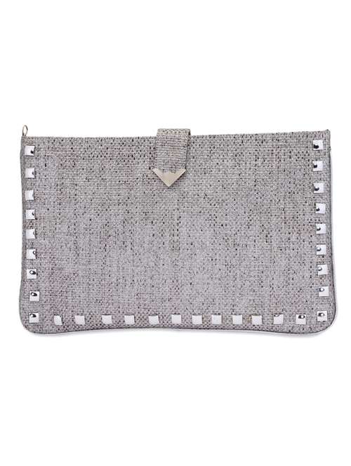 studded grey cane clutch
