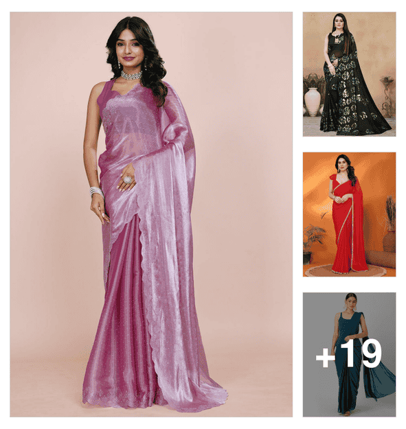 women solid with work embellished saree with blouse