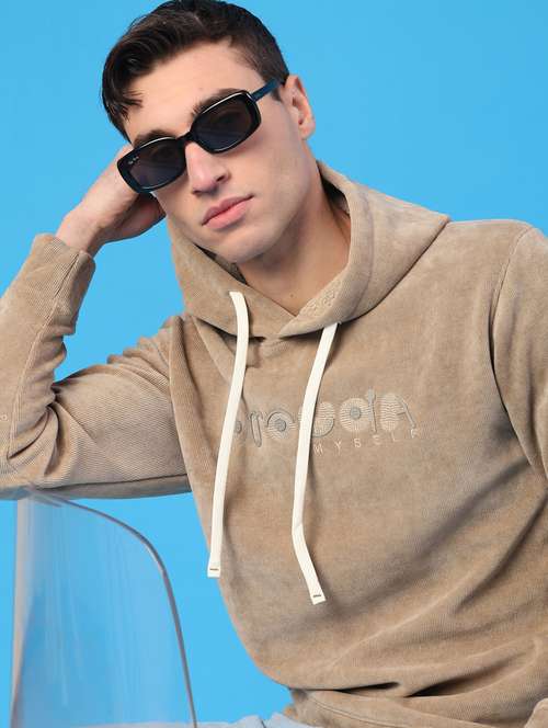 men solid long sleeve hooded sweatshirt