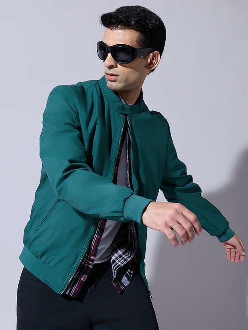 men solid long sleeve bomber jacket