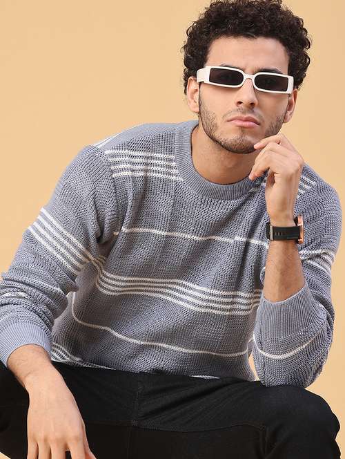 men striped long sleeve regular fit pullover