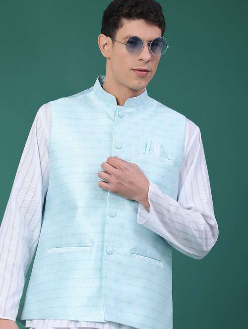 men self design sleeveless nehru jacket