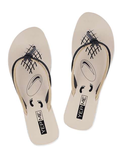Leatherette Black & Beige Toe Separator Sandals - 987184 - Very Small Image - 1