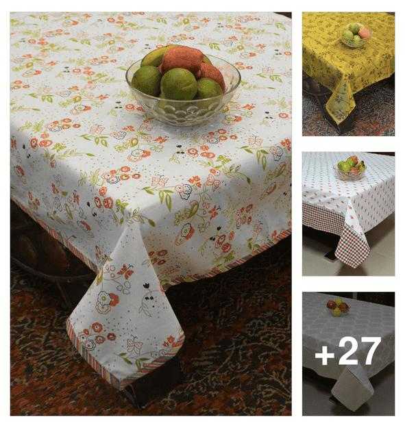 indhome life  pure cotton abstract pattern jaipuri style 6 seater dining table cloth cover