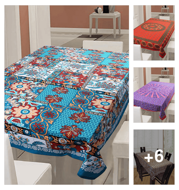 indhome life  pure cotton abstract pattern jaipuri style 6 seater dining table cloth cover