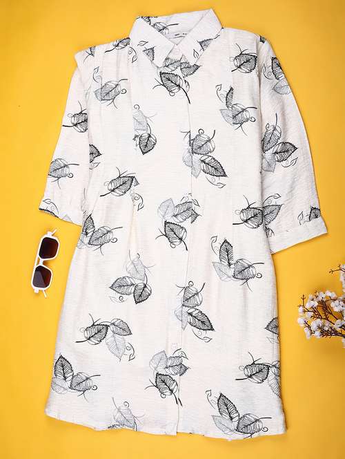 - » girls printed three quarter sleeve collared shirt dress