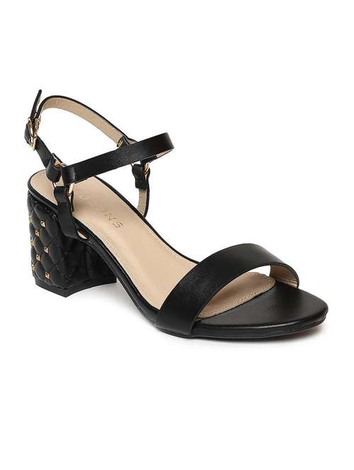 Sporting an attractive, versatile design, this women's medium-heeled, slip-on block heel sandal with a buckle closure. The ultra-chic Addons’ heel sandal includes a cushioned foot-bed to soften every landing, along with a covered riveted block heel.