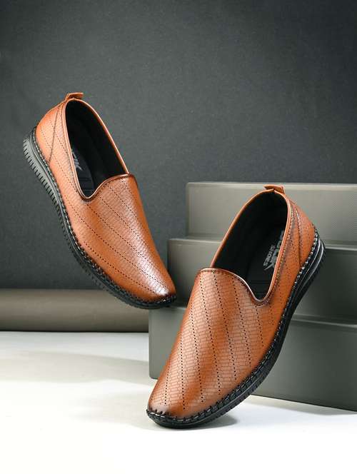 - Explore the epitome of comfy tan slip ons with round shapes to provide you an elated experience every time you put them on.