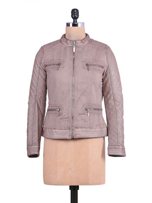 - » Taupe textured cotton full-sleeved jacket