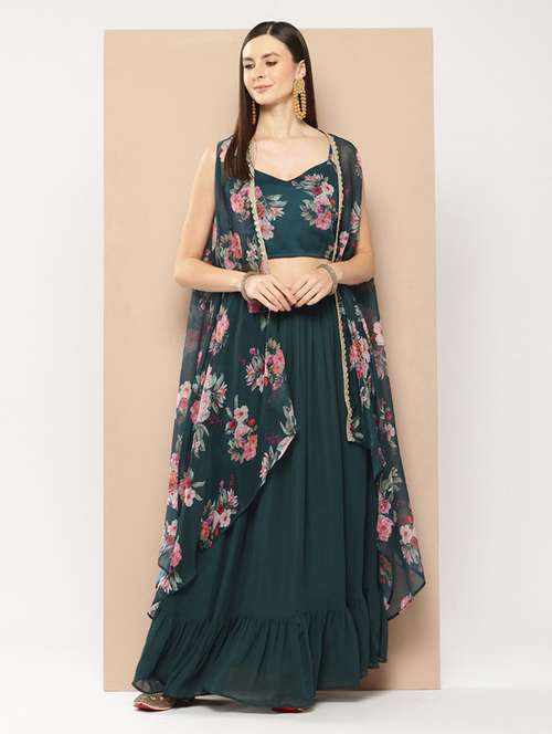 - » women green floral printed fusion set