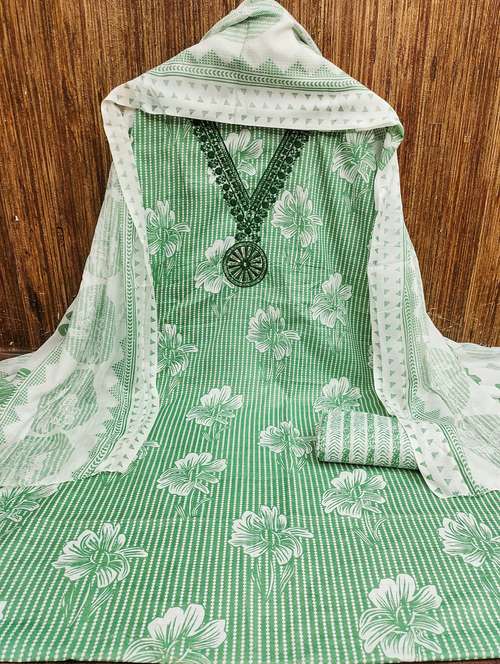 - Look ultra gorgeous in unstitched suits from Leeli Peeri Designer and grab these beautiful suits in green colour.