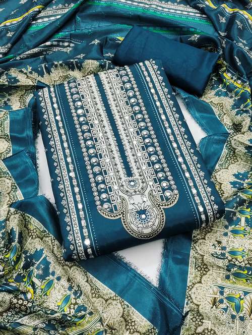 - Look ultra gorgeous in unstitched suits from Leeli Peeri Designer and grab these beautiful suits in teal colour.