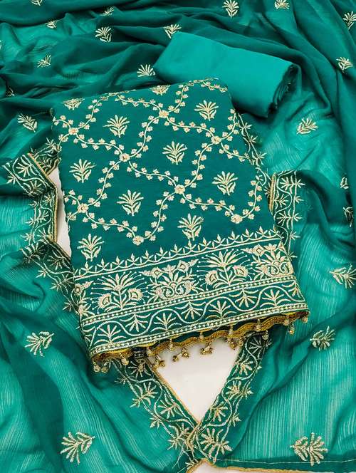 - Look ultra gorgeous in unstitched suits from Leeli Peeri Designer and grab these beautiful suits in sea green colour.